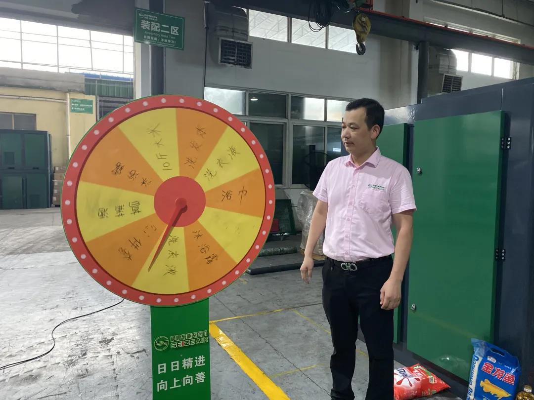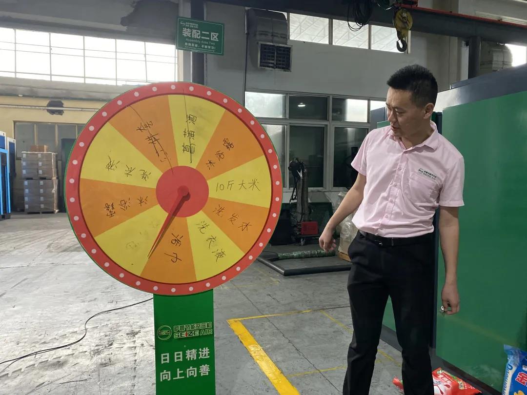 薩震節(jié)能空壓機(jī)第二季度積分獎勵頒獎進(jìn)行中,