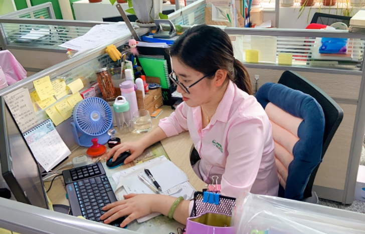 工作中的江萍,總是表現得兢兢業業,對自己的工作一絲不茍。“ 做采購首先要有一顆細膩的心。這關乎其他部門同事的工作需要,耽誤不得也馬虎不得,得仔細核對清楚才行。一旦工作出現失誤,造成的影響還是蠻大的。”