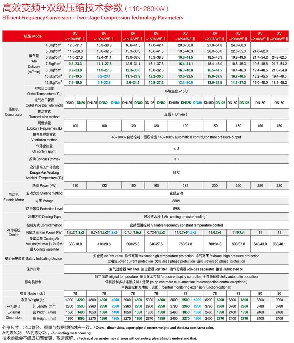 高效變頻雙級壓縮技術參數(22~90kw)